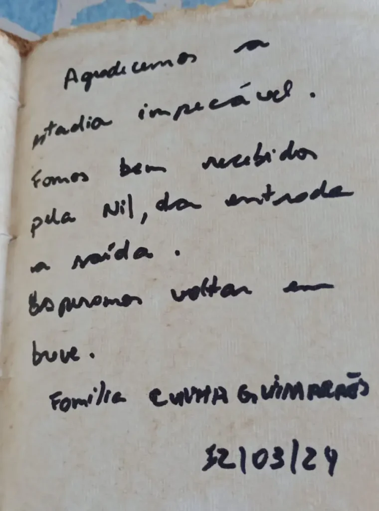 Agradecemos a estadia impecável. Fomos bem recebidos pela Nil, da entrada a saída. Esperamos voltar em breve. Família Cunha Guimarães.