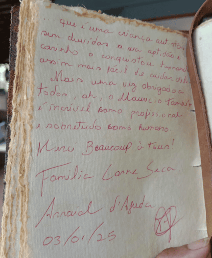 … que é uma criança autista, sem dúvidas a sua aptidão e carinho o conquistou, tornando assim mais fácil de cuidar dele.